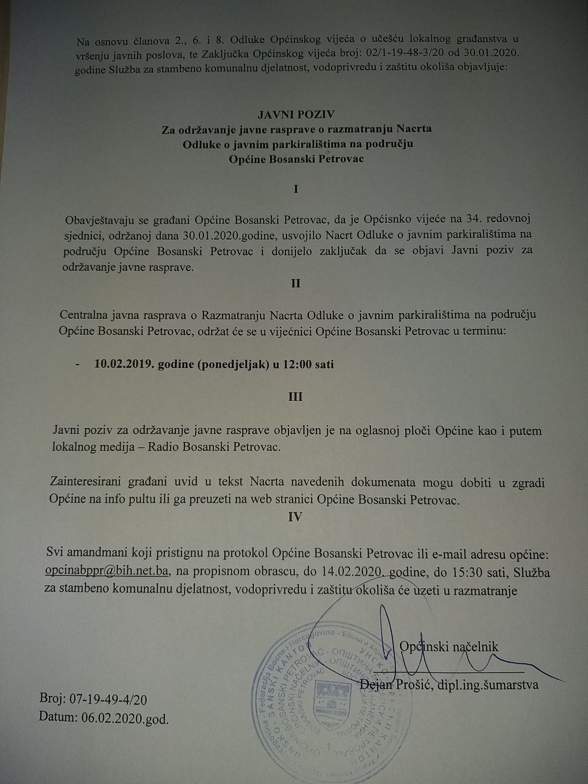 Javna rasprava o Nacrtu Odluke o javnim parkiralištima