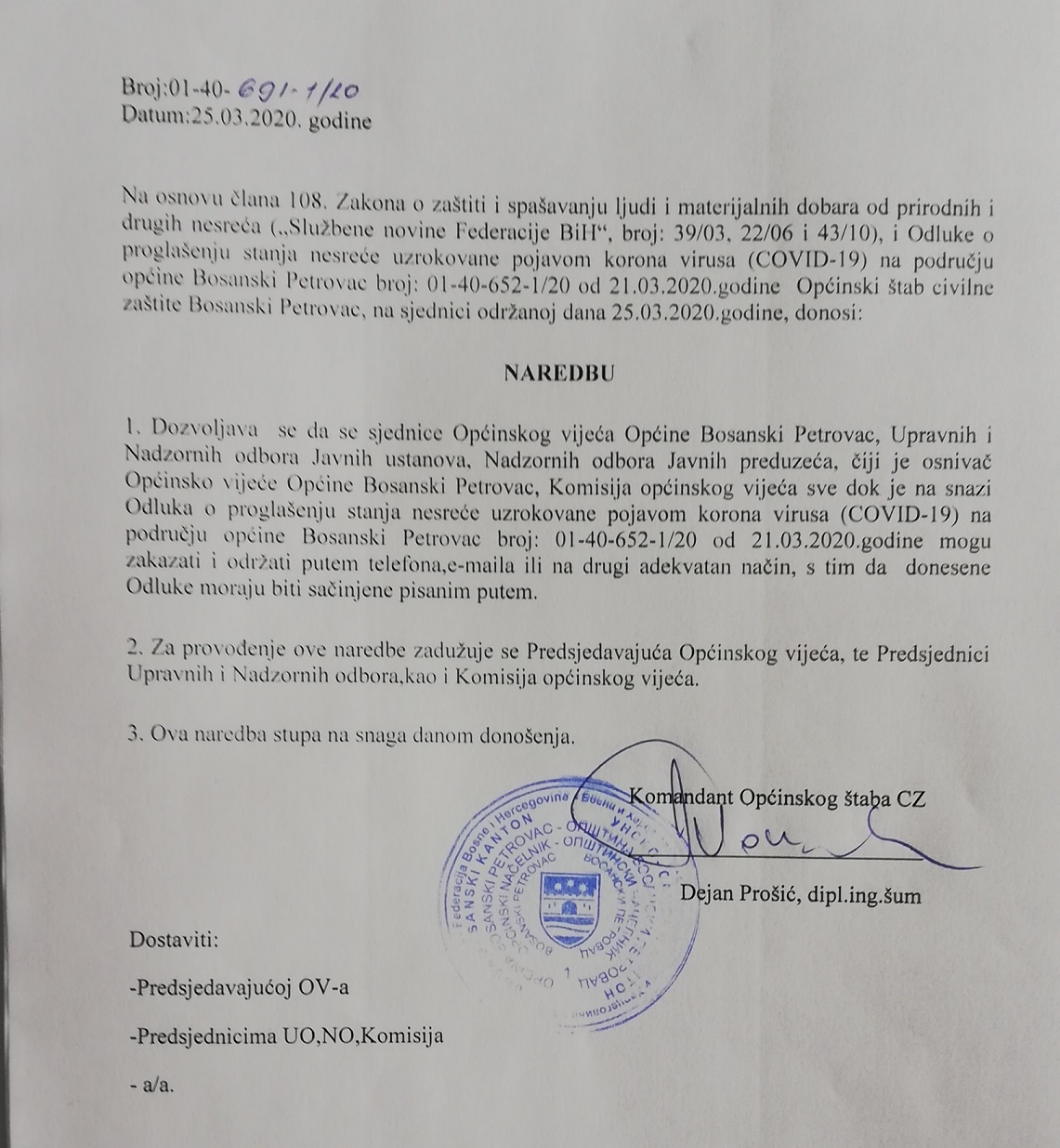 Naredbe Štaba civilne zaštite, 25.03.2020.god.
