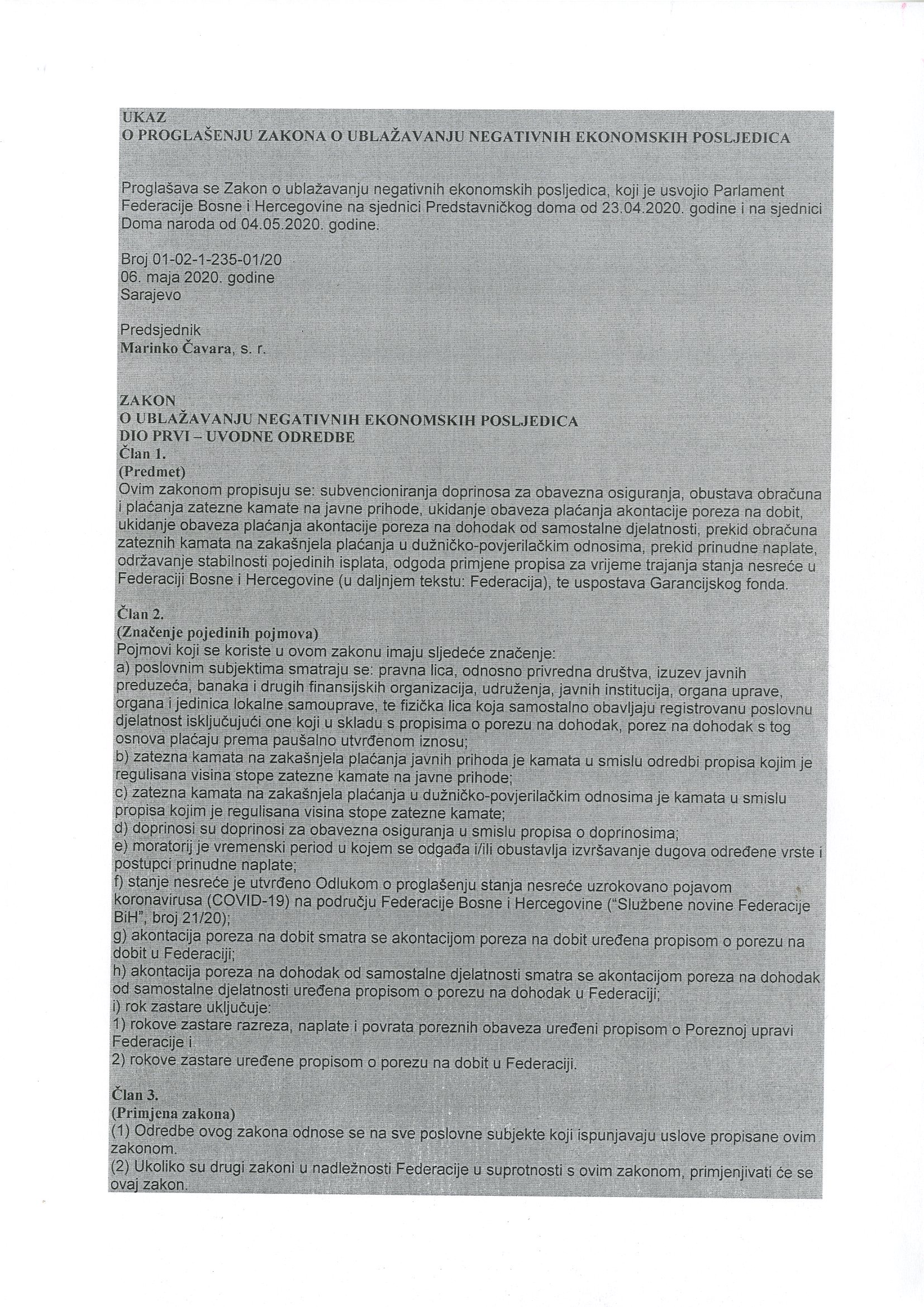Zakon o ublažavanju negativnih ekonomskih posljedica