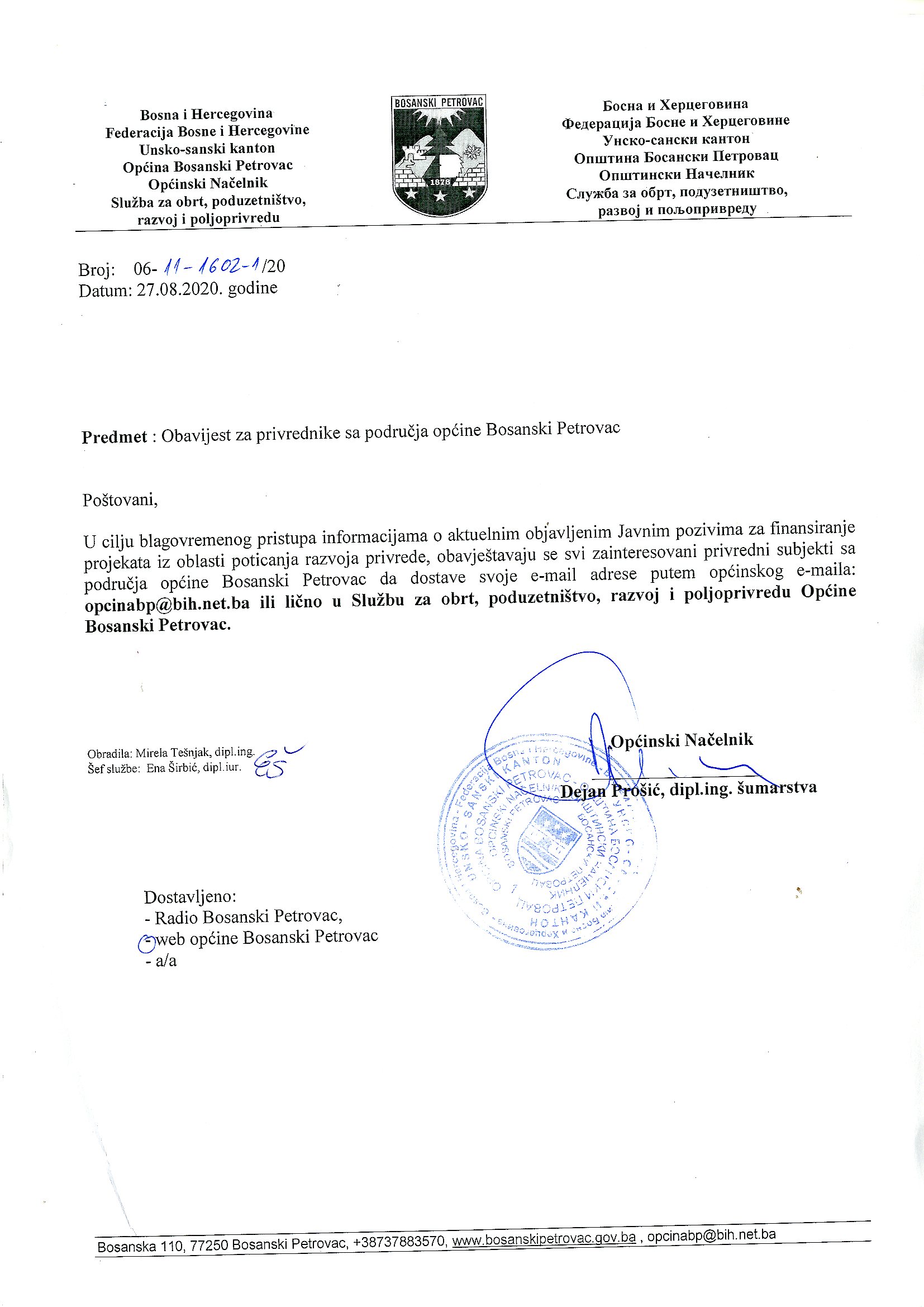 Obavijest za privrednike