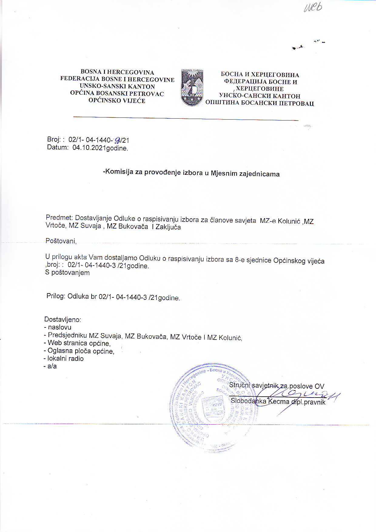 Raspisivanje izbora za članove savjeta MZ Kolunić, MZ Vrtoče, MZ Suvaja i MZ Bukovača
