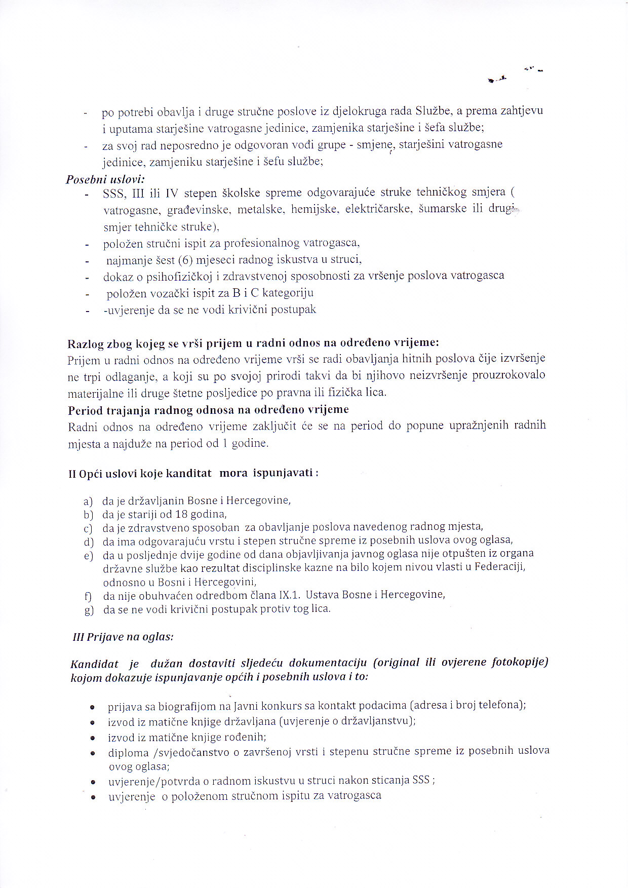 Javni oglas za prijem namještenika na određeno vrijeme u jedinstvenom općinskom organu uprave općine Bosanski Petrovac