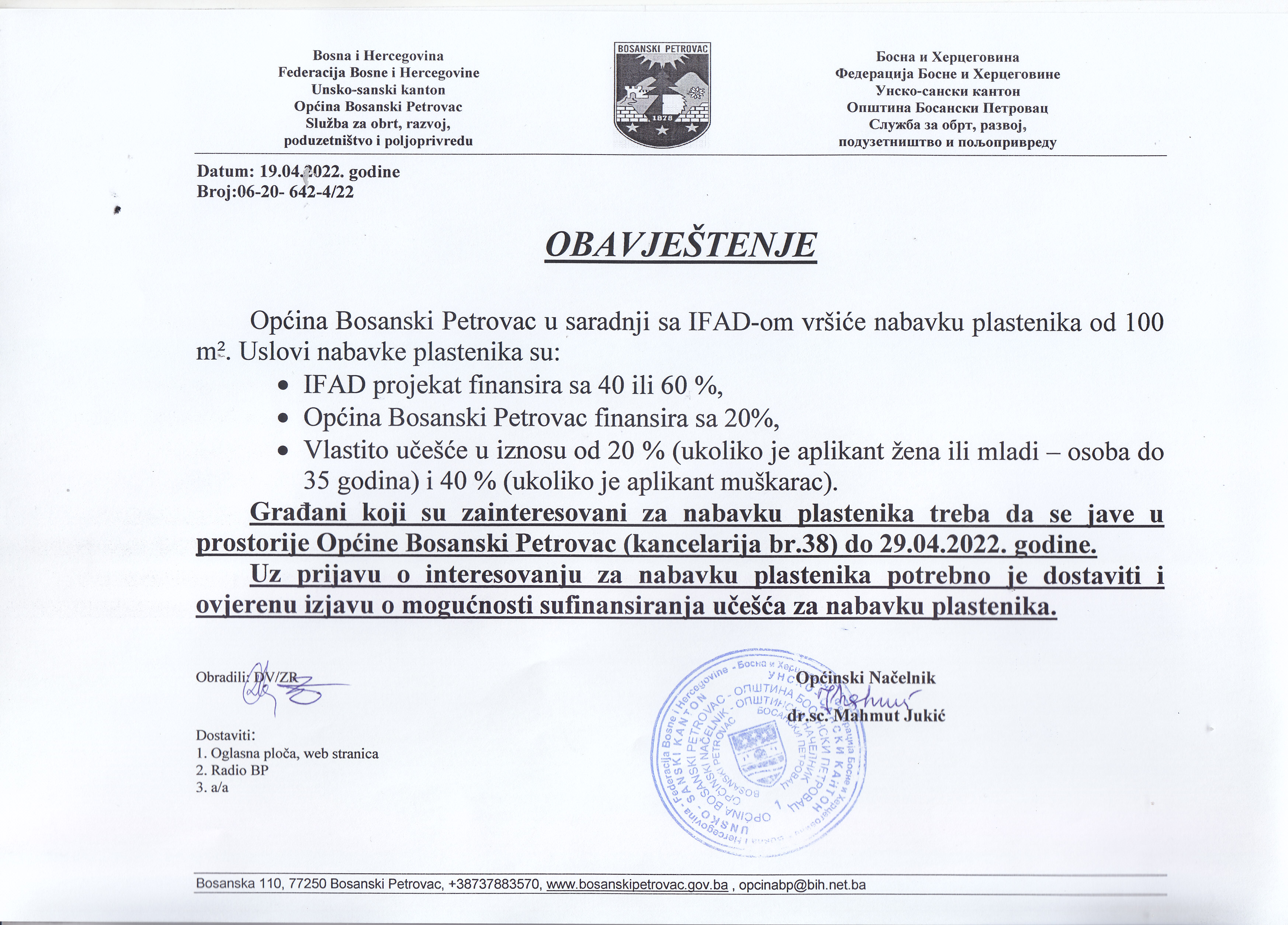 Obavještenje za građane zainteresovane za nabavku plastenika