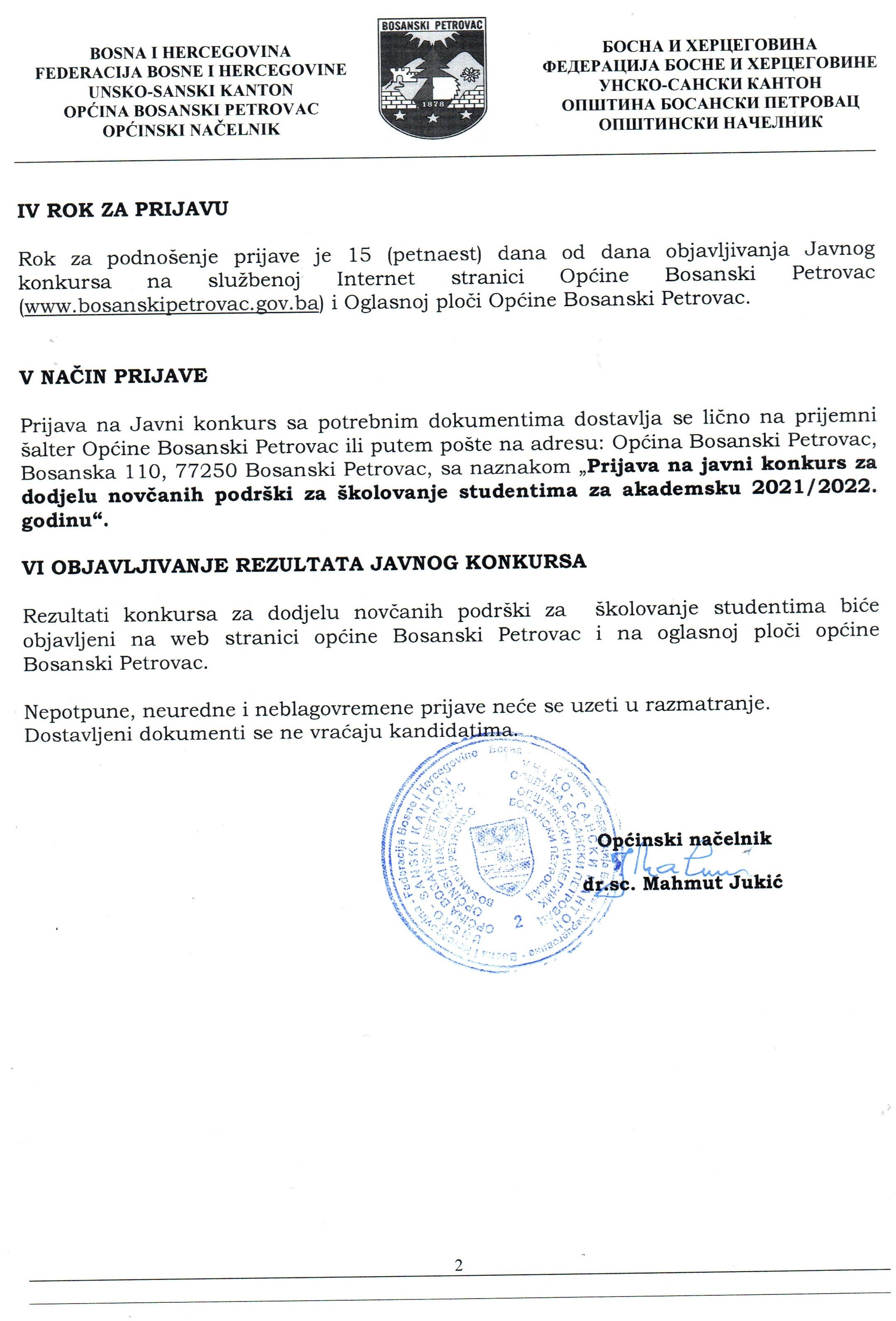 JAVNI KONKURS ZA DODJELU NOVČANIH PODRŠKI ZA ŠKOLOVANJE STUDENTIMA ZA AKADEMSKU 2021/2022. GODINU