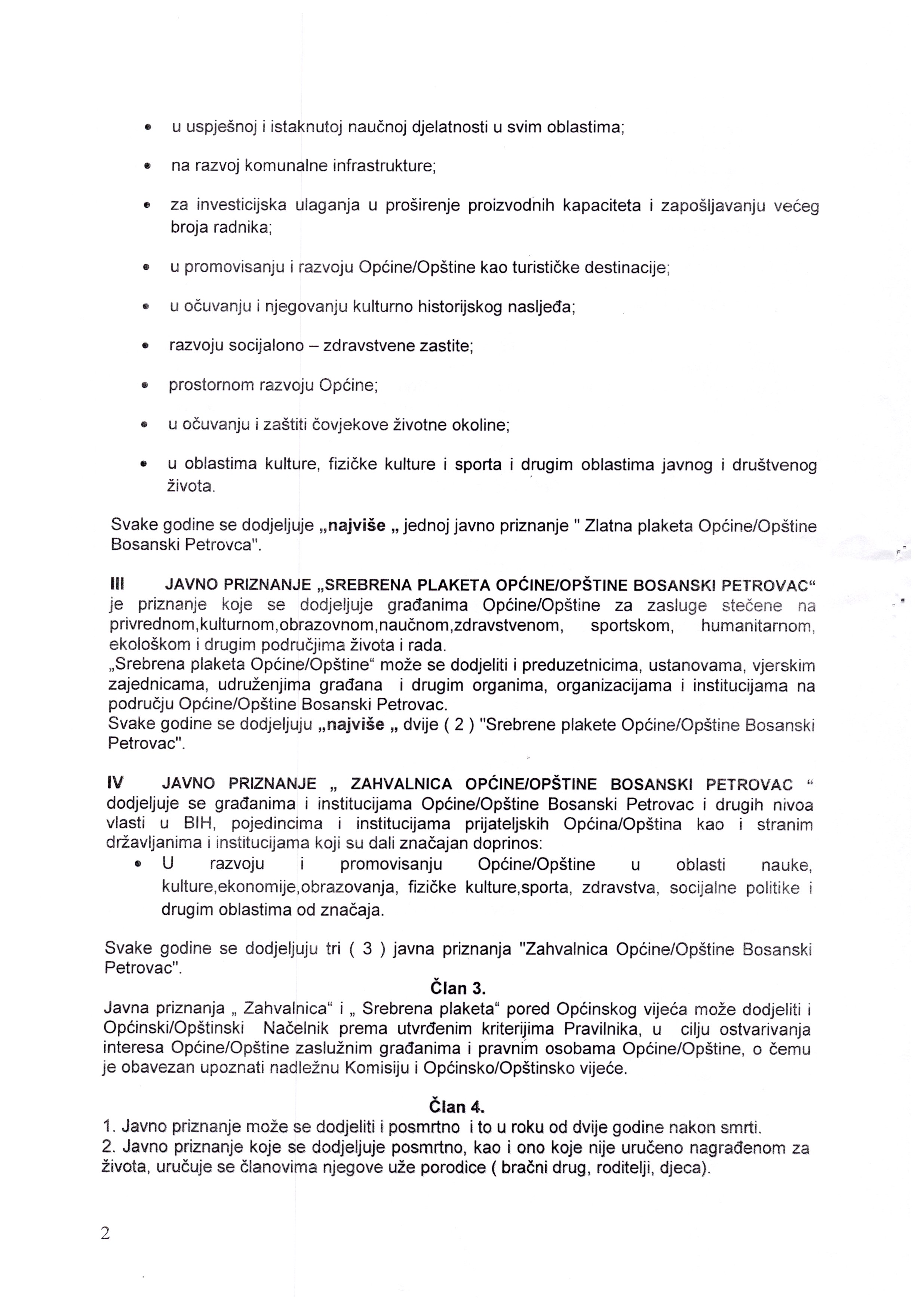 Javni poziv za podnošenje Prijedloga za dodjelu općinskih/opštinskih priznanja općine/opštine Bosanski Petrovac za 2023. godinu