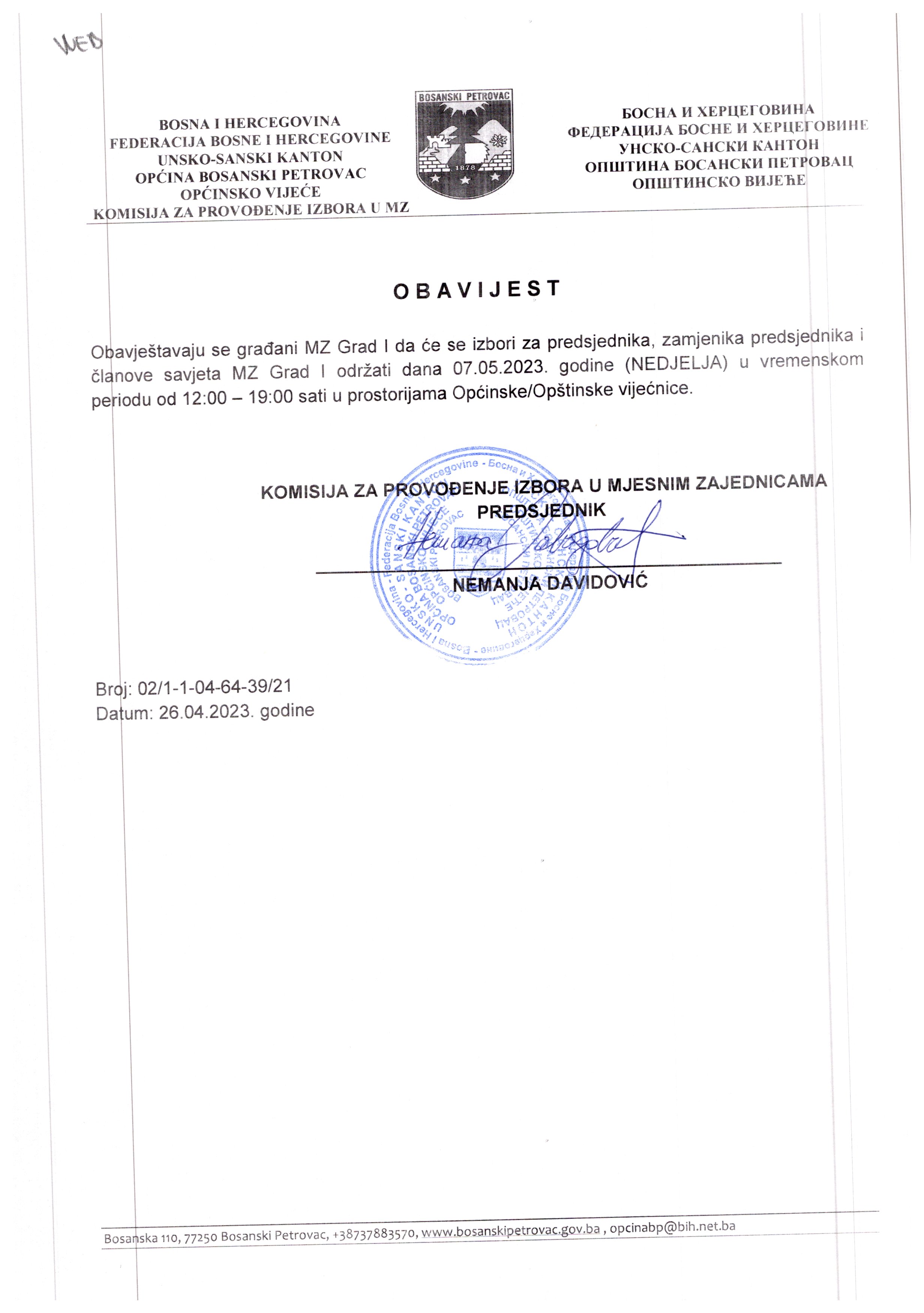 Obavijest MZ Grad I