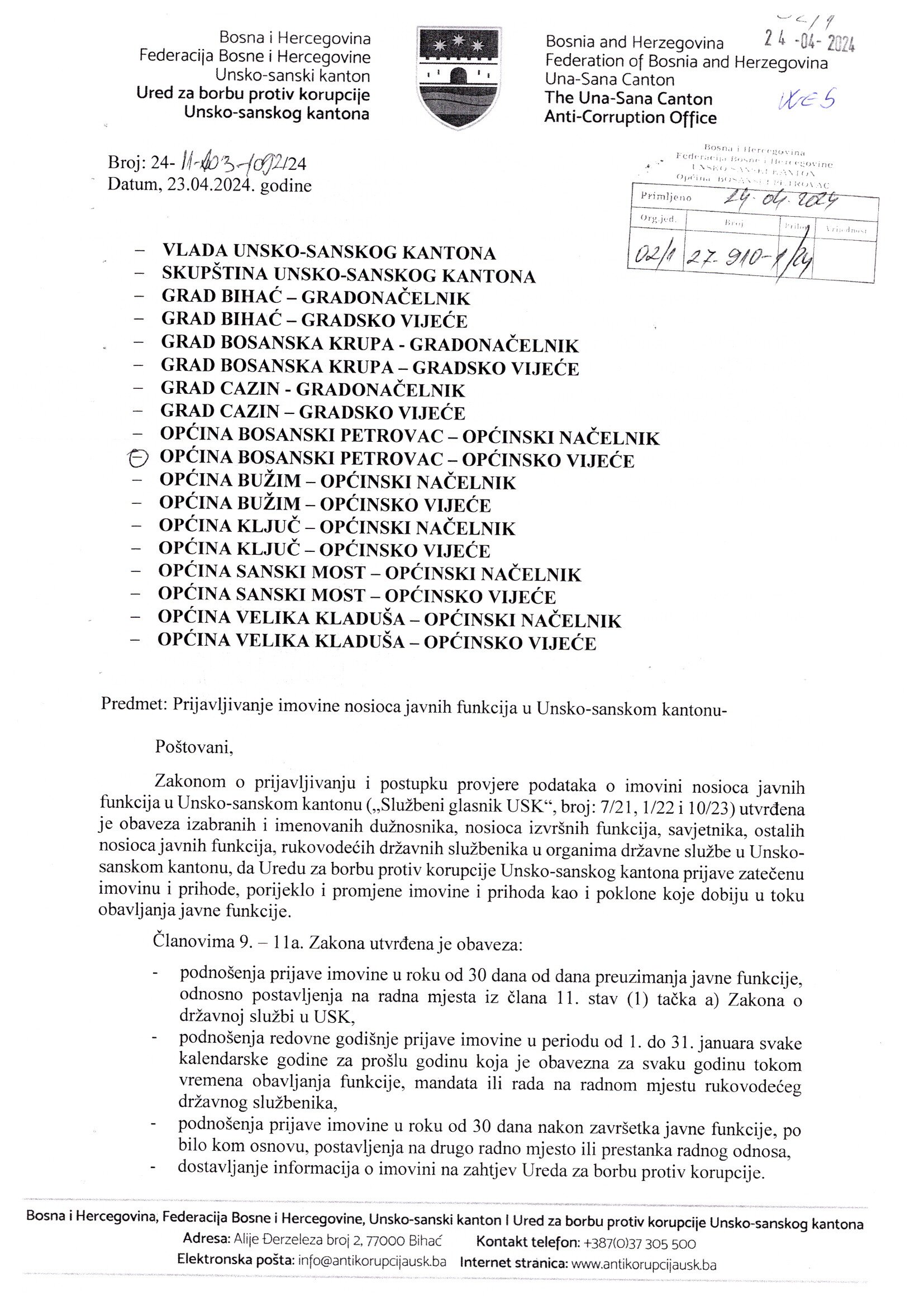 Prijavljivanje imovine nosioca javnih funkcija u Unsko-sanskom kantonu