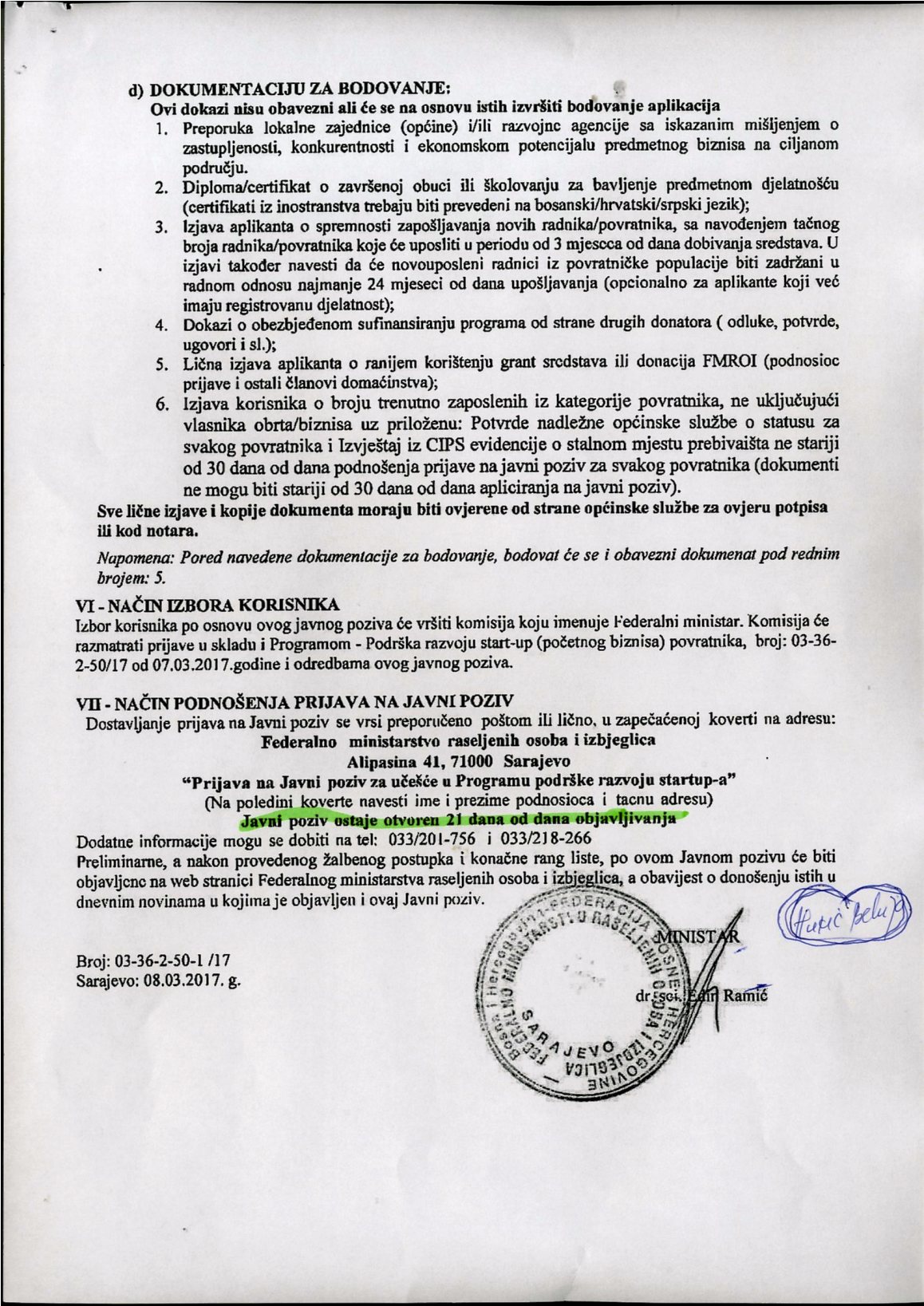 Javni poziv, razvoj početnog biznisa