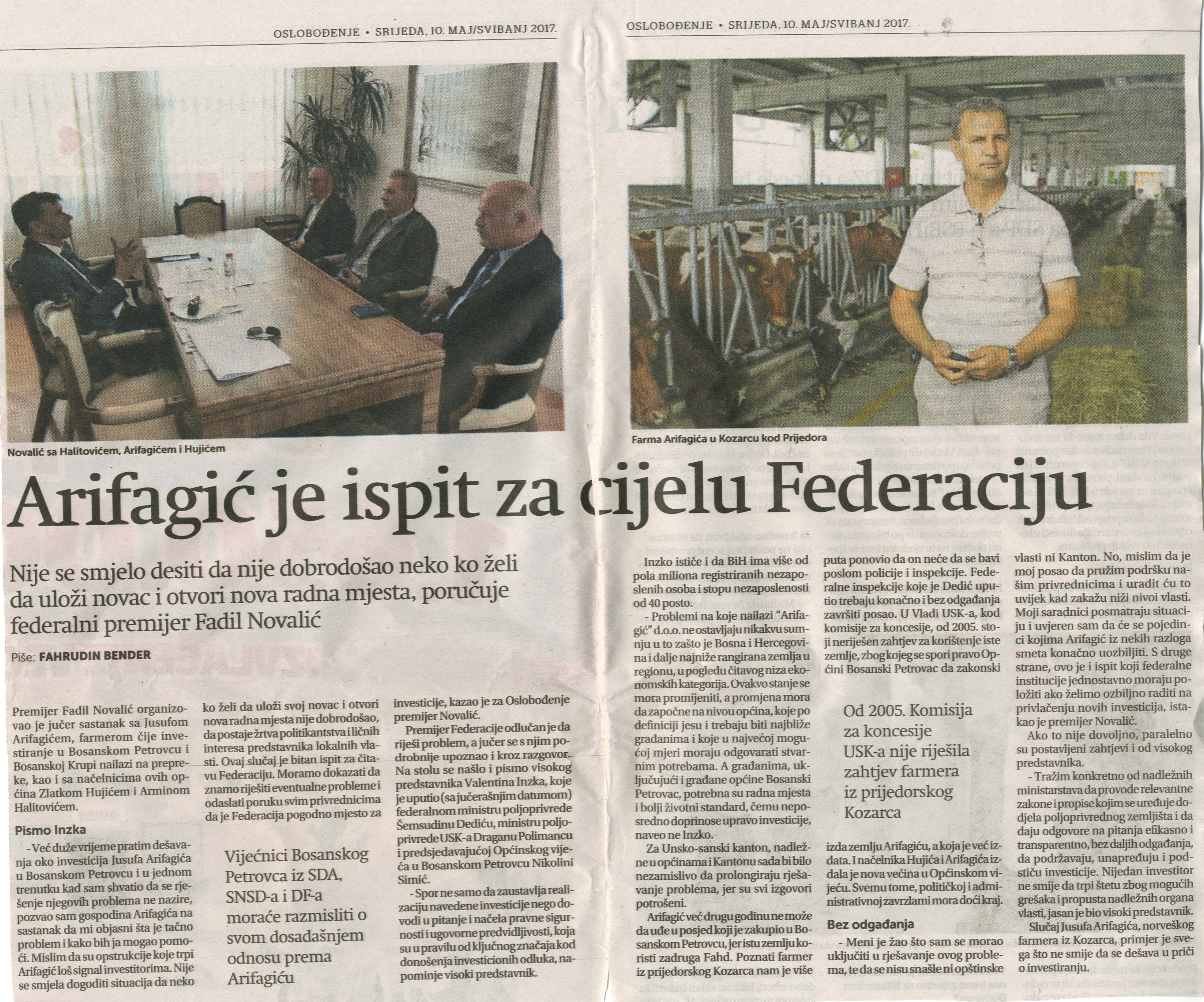 Članak: Oslobođenje 10.05.2017.