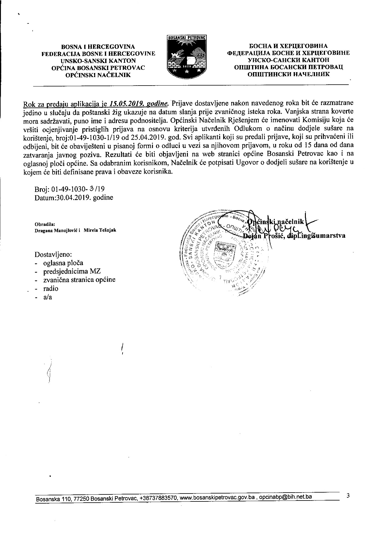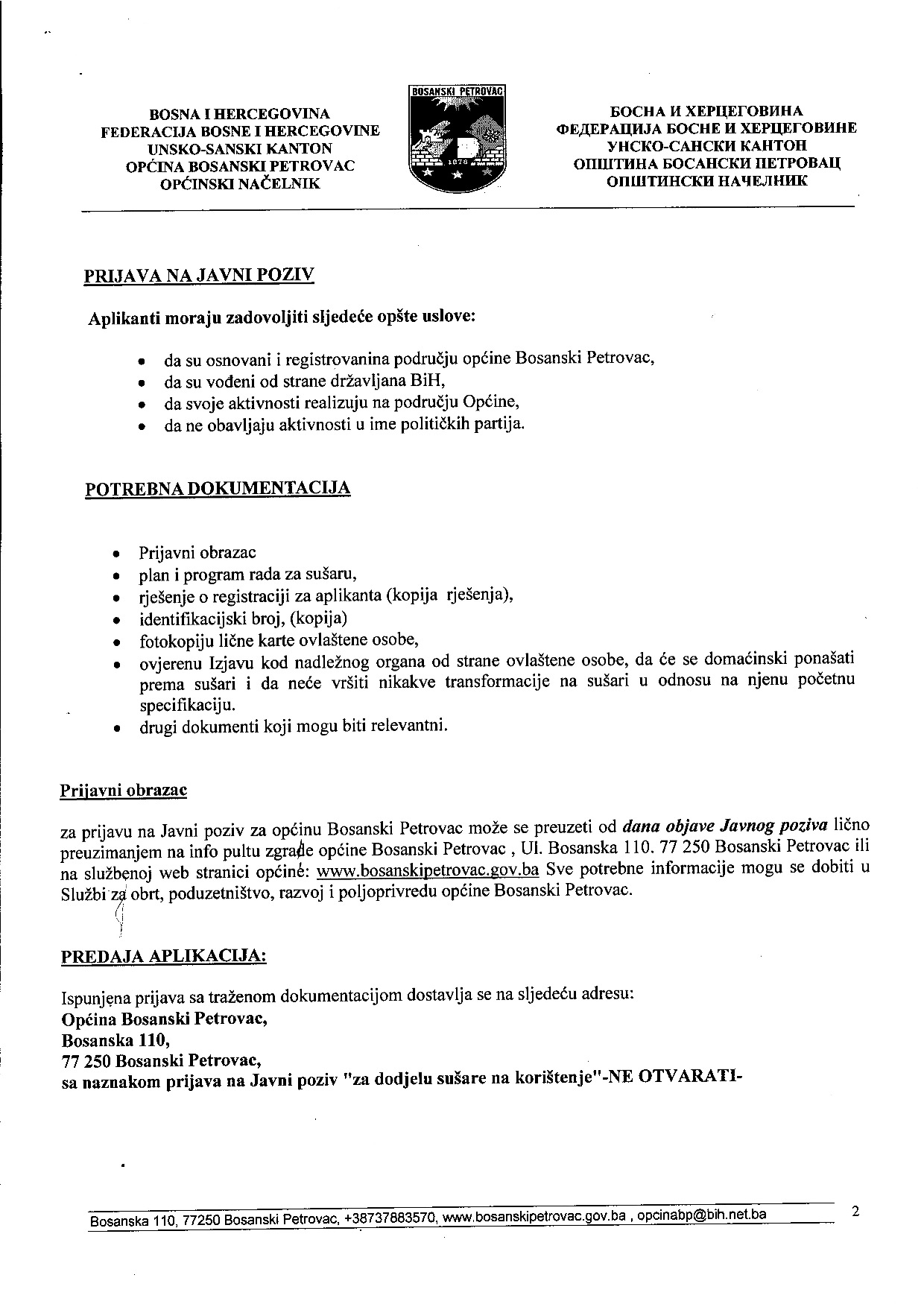 JAVNI POZIV ZA DODJELU SUŠARE NA KORIŠTENJE