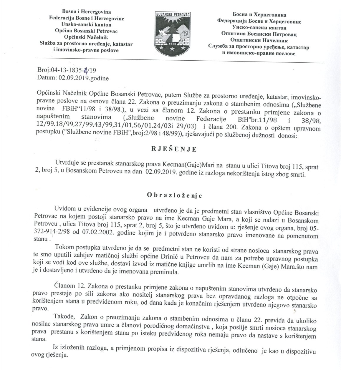 Rješenje 04-13-1835-4/19