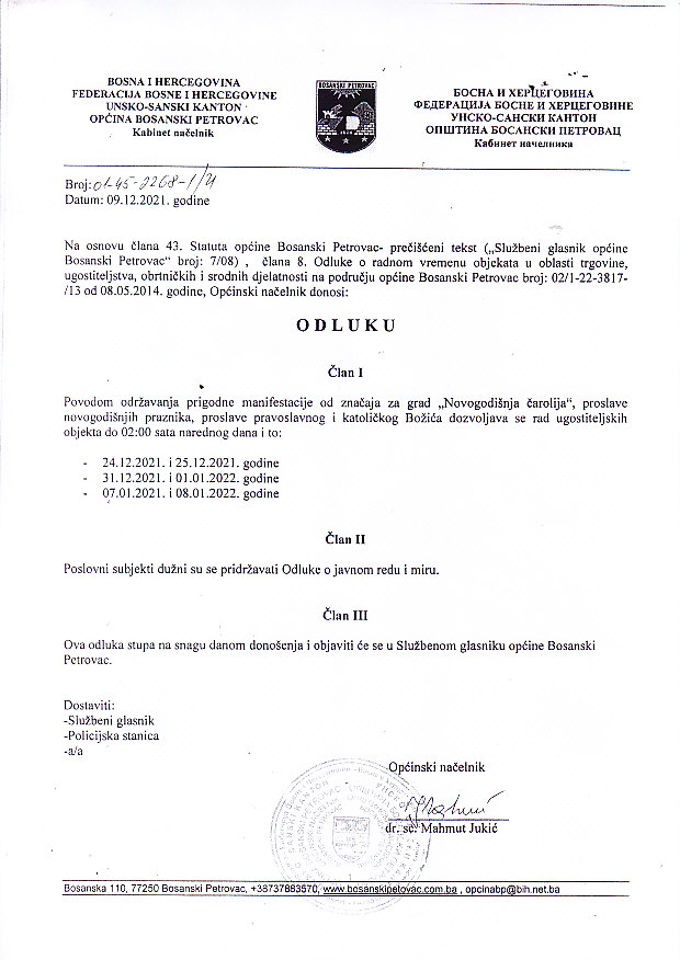 Radno vrijeme tokom novogodišnjih i Božićnih praznika