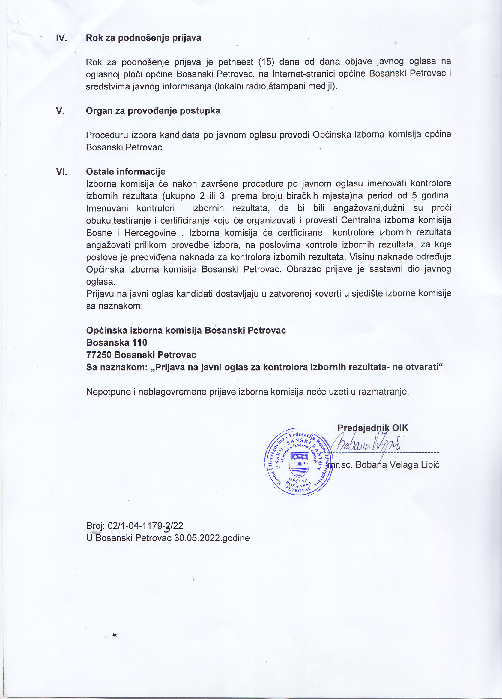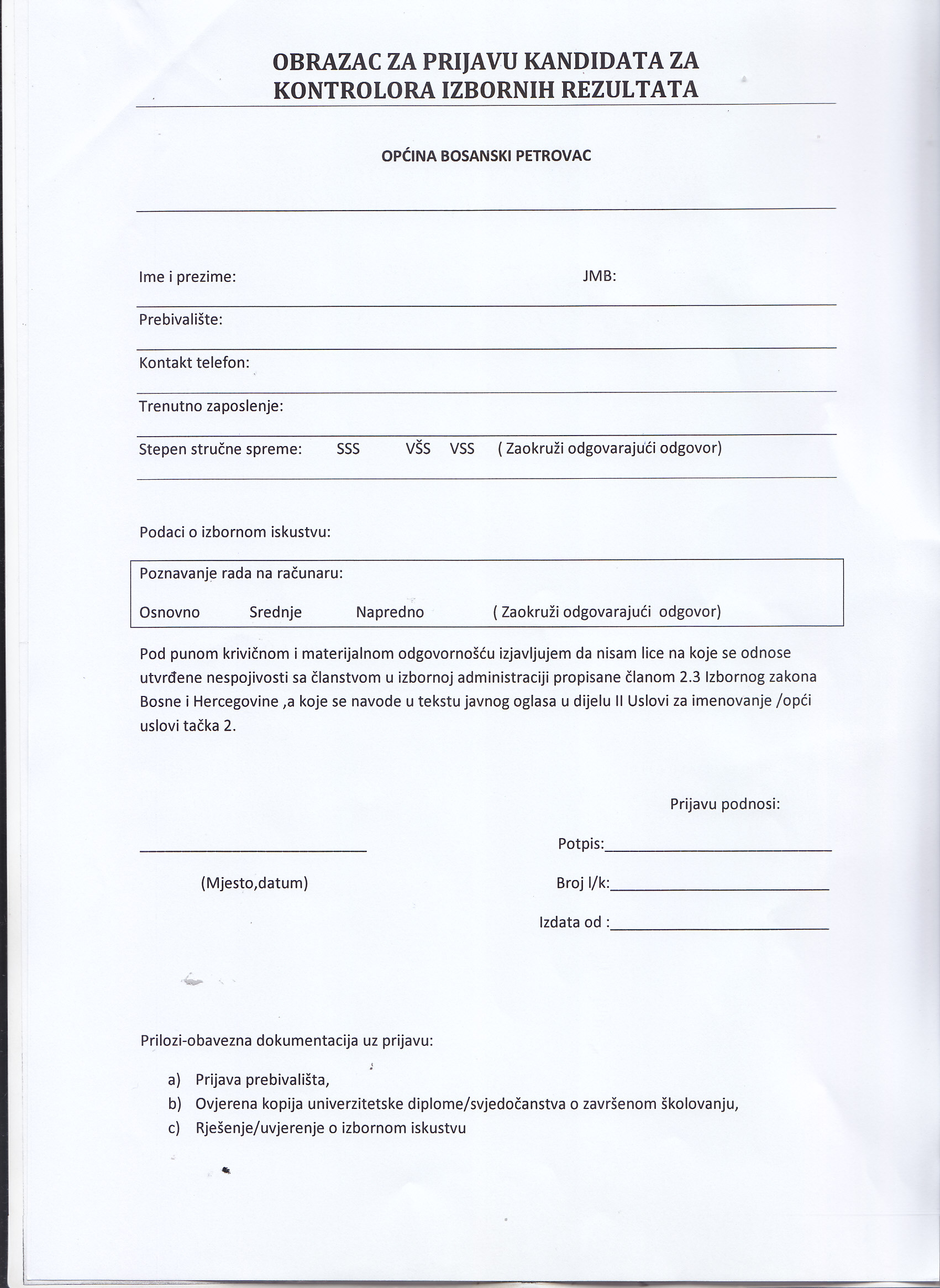 Javni oglas za prijavu kandidata za kontrolora izbornih rezultata