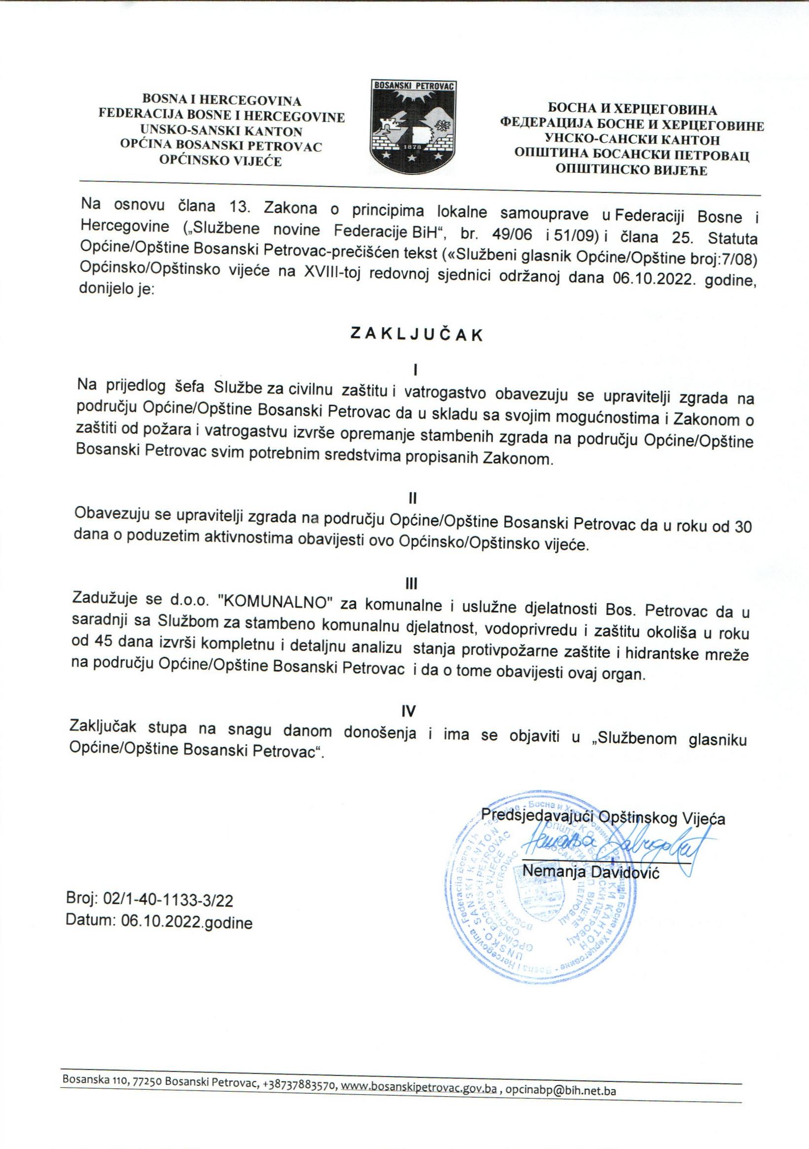 Zaključak Općinskog vijeća