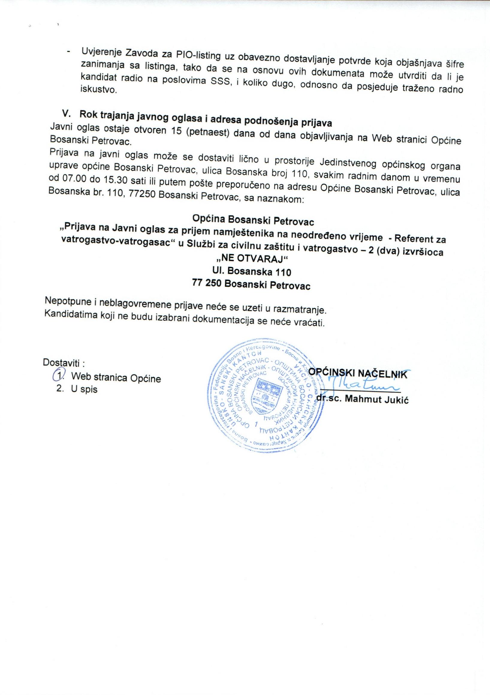 JAVNI OGLAS ZA PRIJEM NAMJEŠTENIKA
