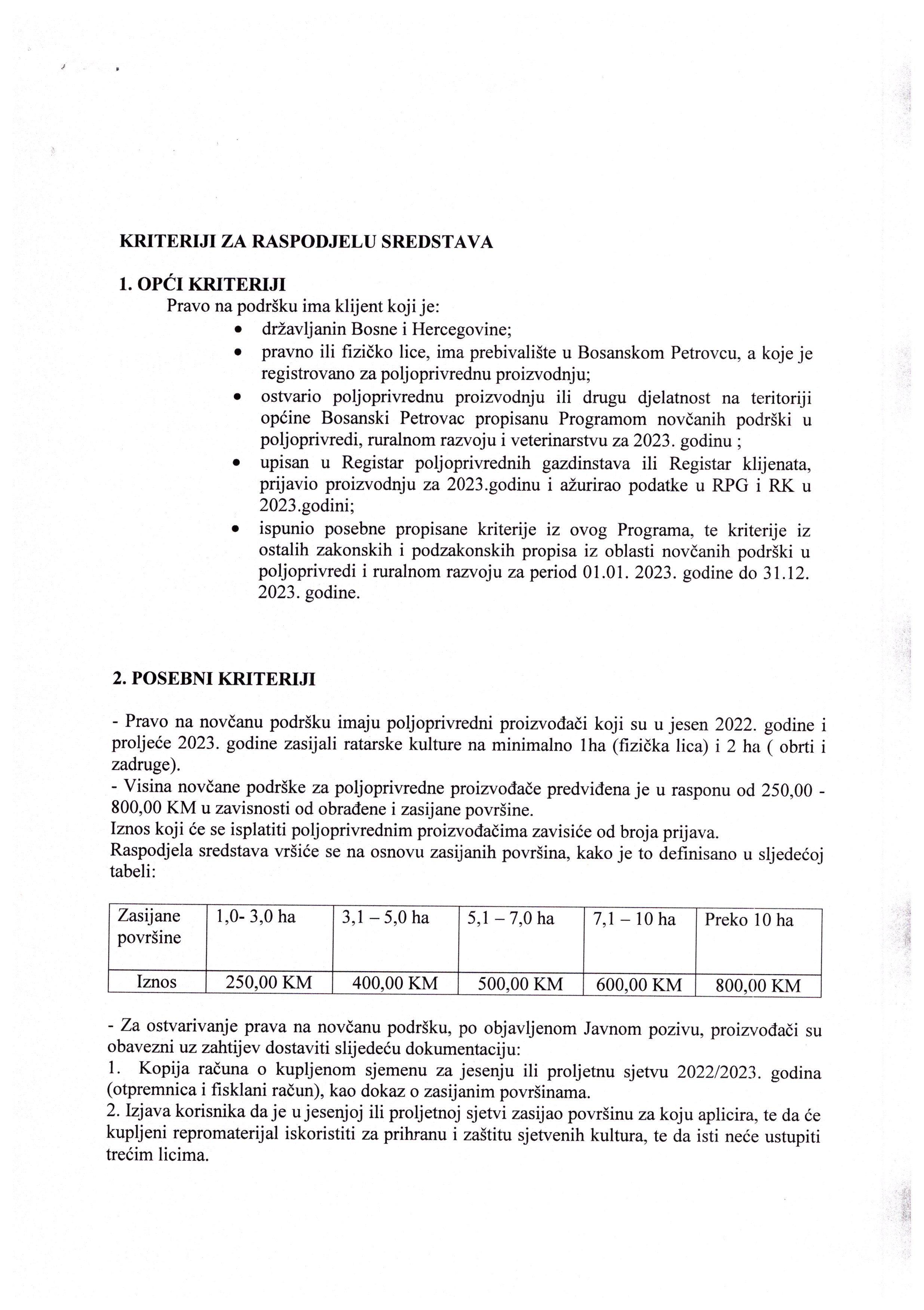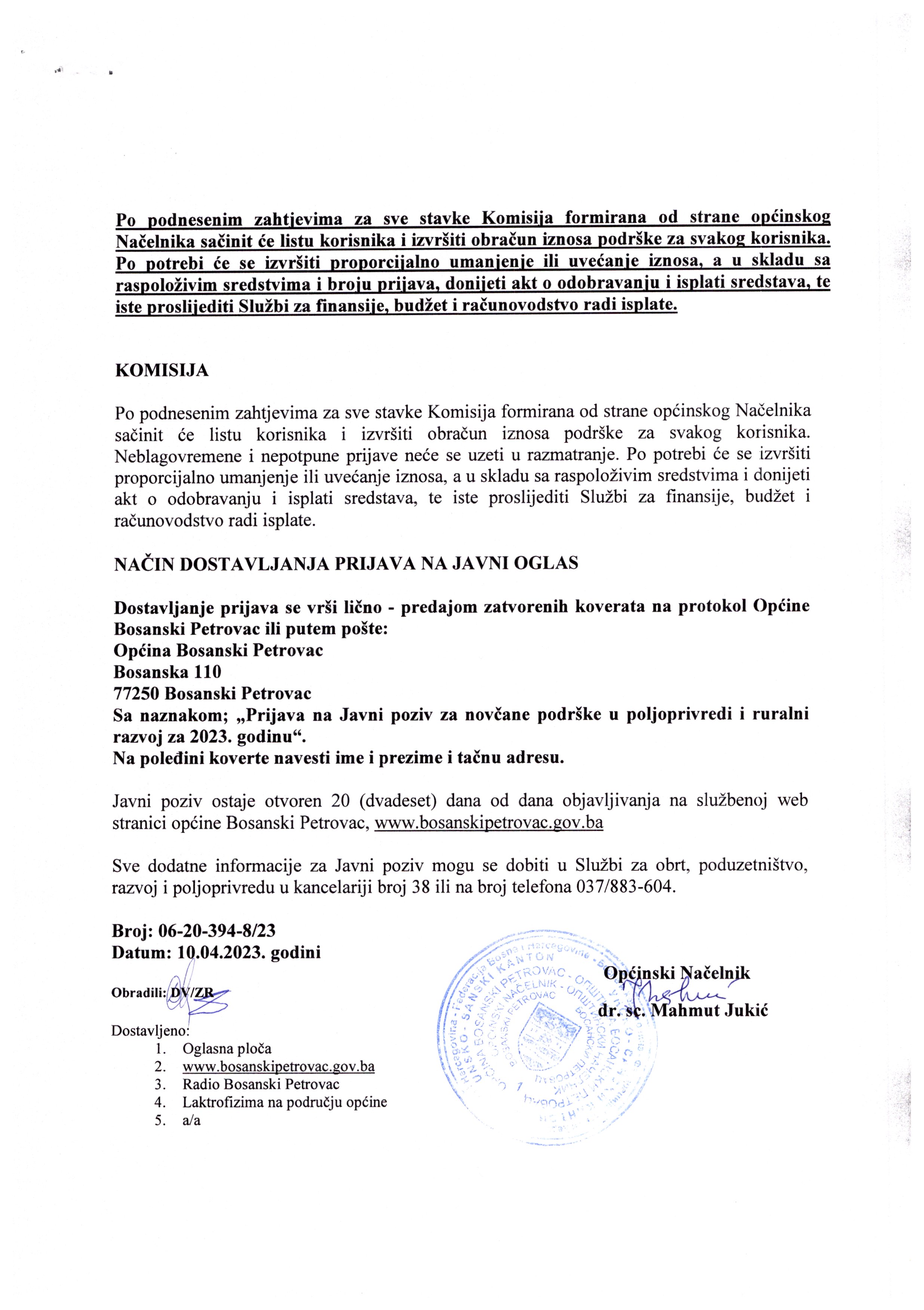 Javni poziv za novčane podrške u poljoprivredi i ruralnom razvoju za 2023. godinu