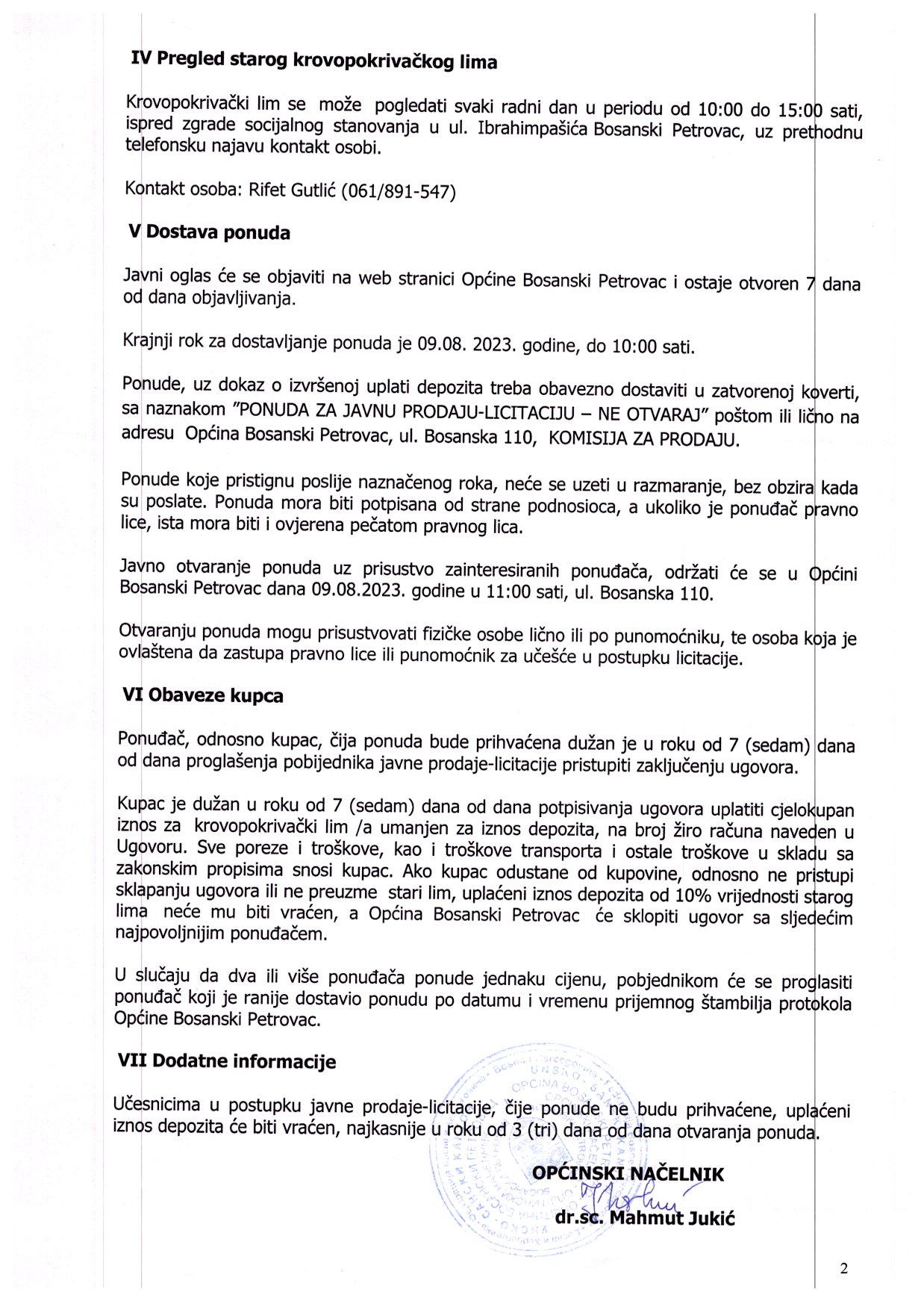 JAVNI OGLAS za prodaju putem javne prodaje - licitacije