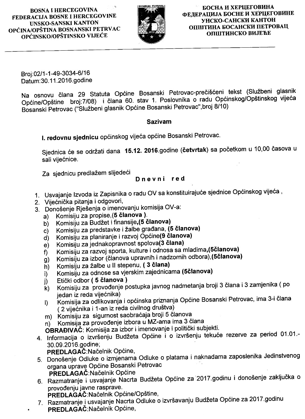 Prva redovna sjednica OV-a