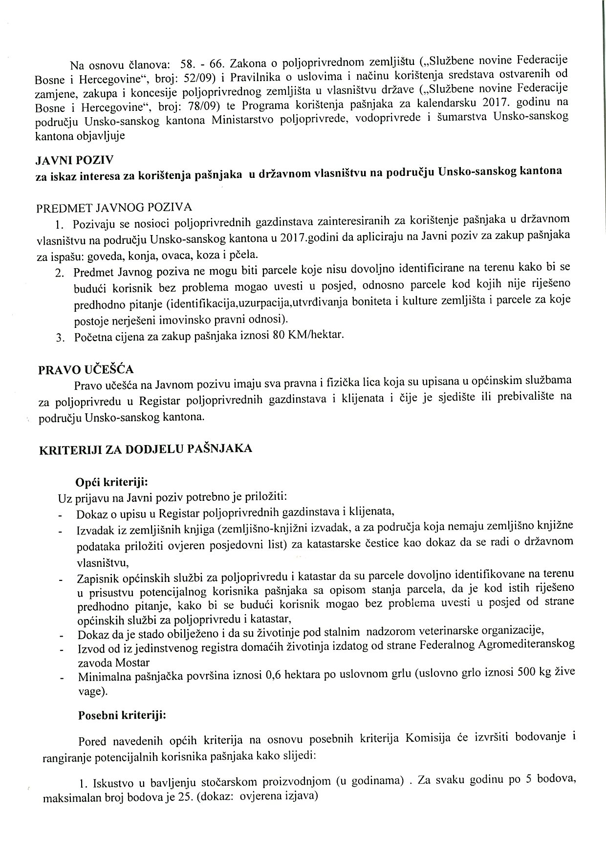 Javni poziv za iskaz interesa za korištenje pašnjaka u državnom vlasništvu