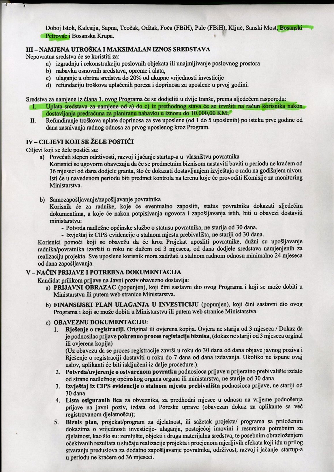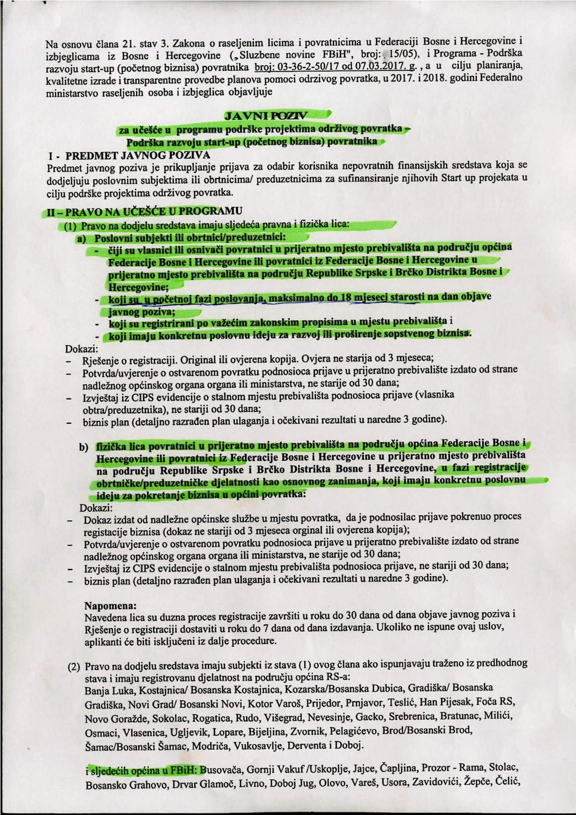 Javni poziv, razvoj početnog biznisa