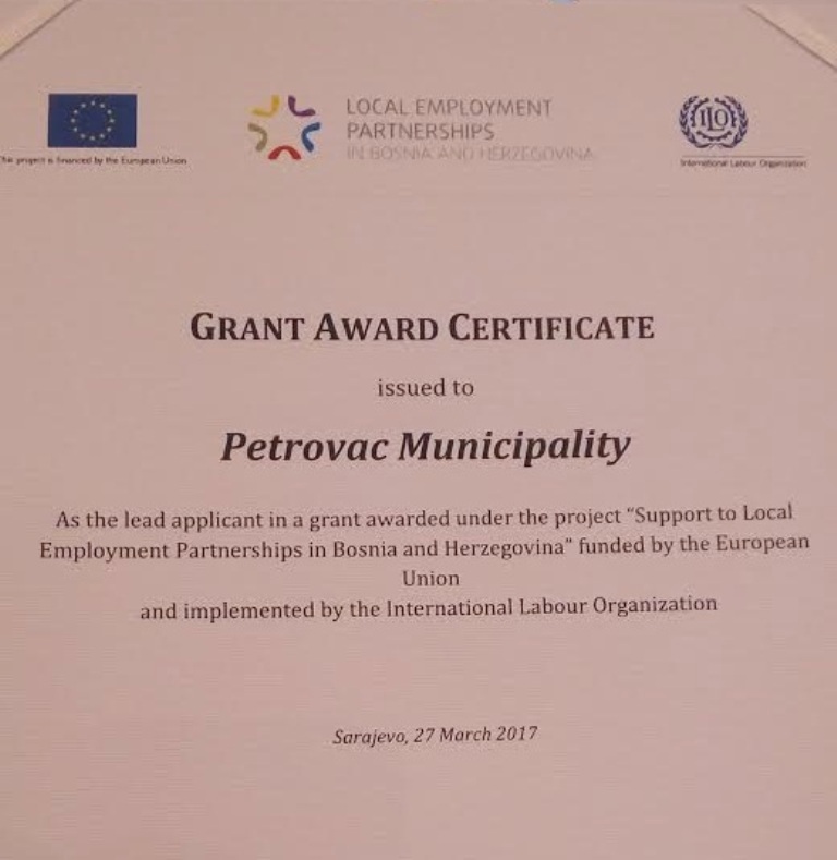 Dana, 27.3.2017. godine u Sarajevu je održana dodjela certifikata o grantovima u sklopu projekta “Lokalna partnerstva za zapošljavanje” kojeg finansira EU. Grantove u iznosu od 3 miliona eura dobilo je 15 novoosnovanih lokalnih partnerstava za zapošljavanje koja će u naredne dvije godine biti odgovorna za povećanje zapošljivosti.