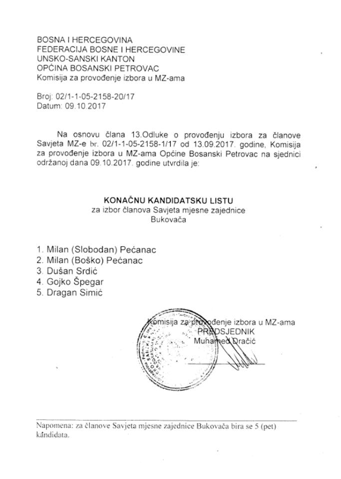 Izbori će se održati 15.10.2017. godine (nedjelja) u Osnovnoj školi.