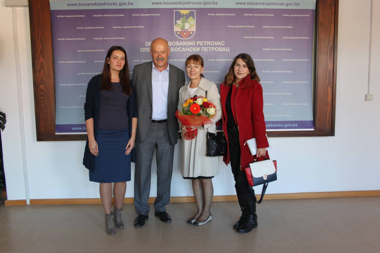 Ismeta Dervoz, poslanica u predstavničkom domu Parlamentarne skupštine BiH, članica Stalne delegacije u Parlamentarnoj skupštini Vijeća Evrope, koordinatorica na projektu omladinskih koordinatora Vijeća Evrope, posjetila je, dana 13.10.2017. godine Opštinu Bosanski Petrovac, gdje je u Kabinetu načelnika dočekao načelnik Zlatko Hujić.