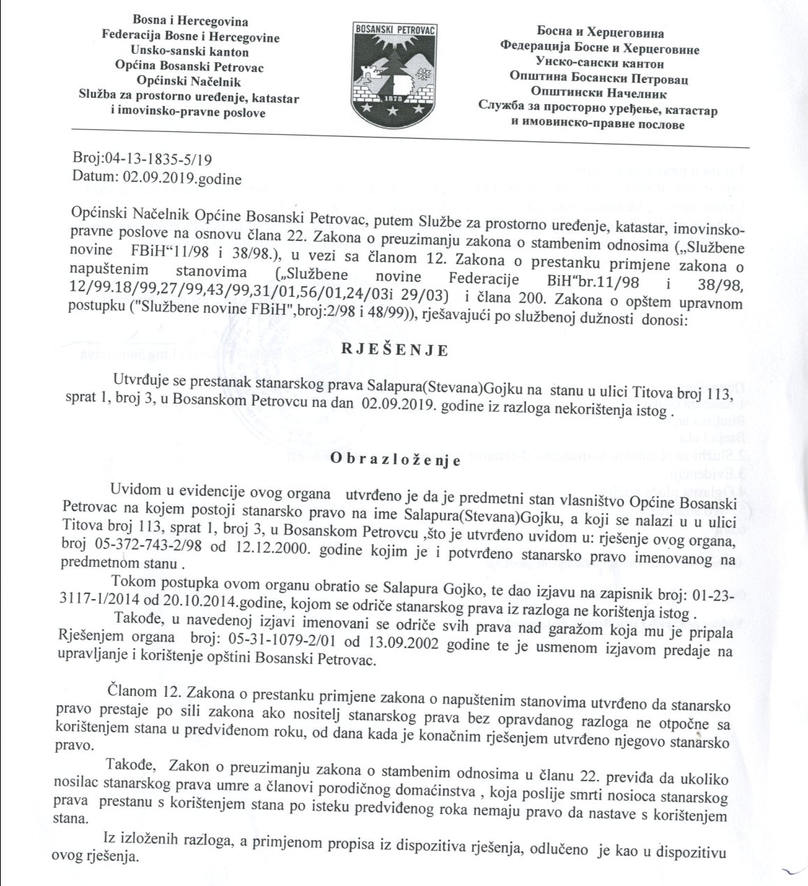 Rješenje 04-13-1835-5/19