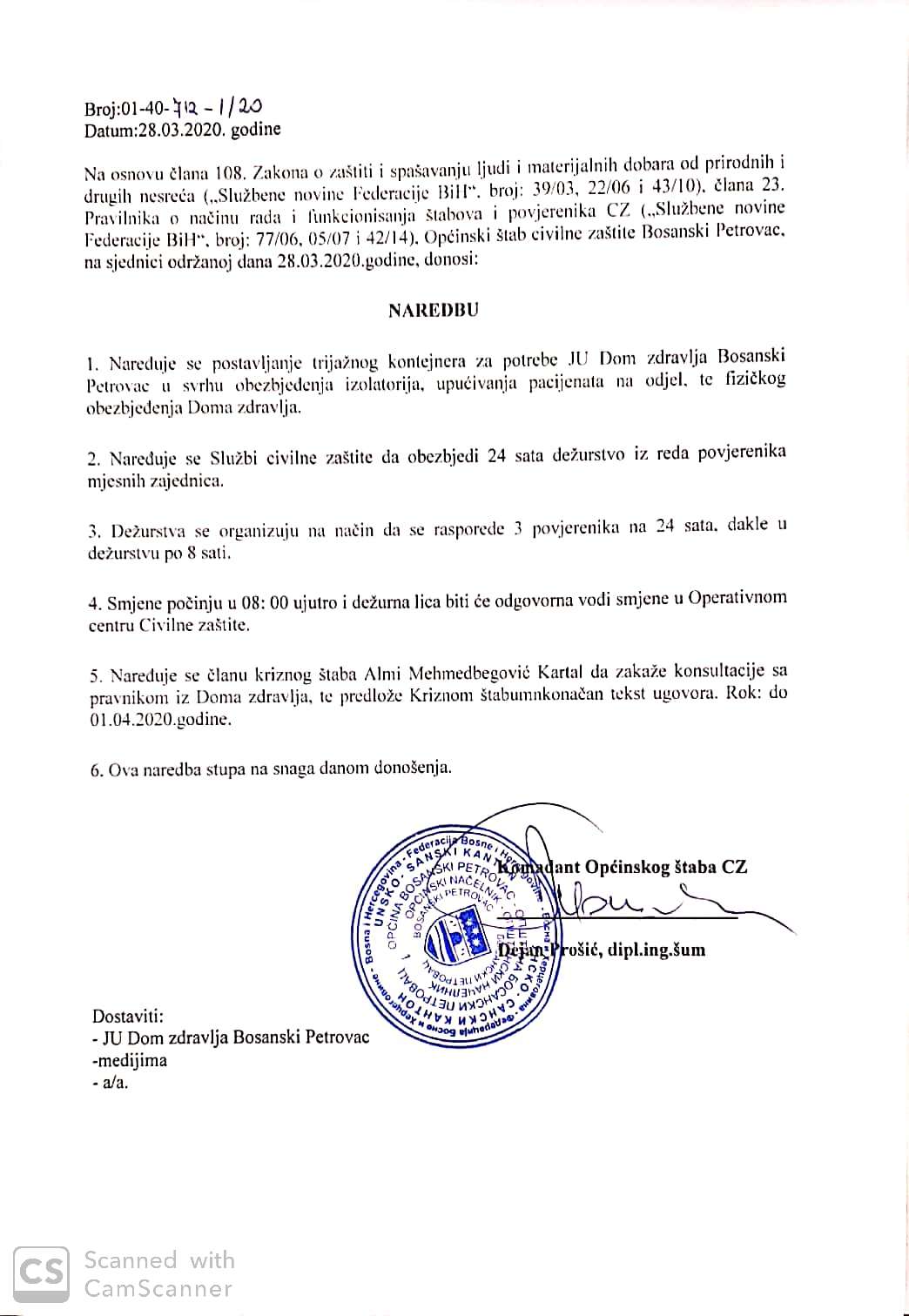Naredbe štaba civilne zaštite, 28.03.2020.god.